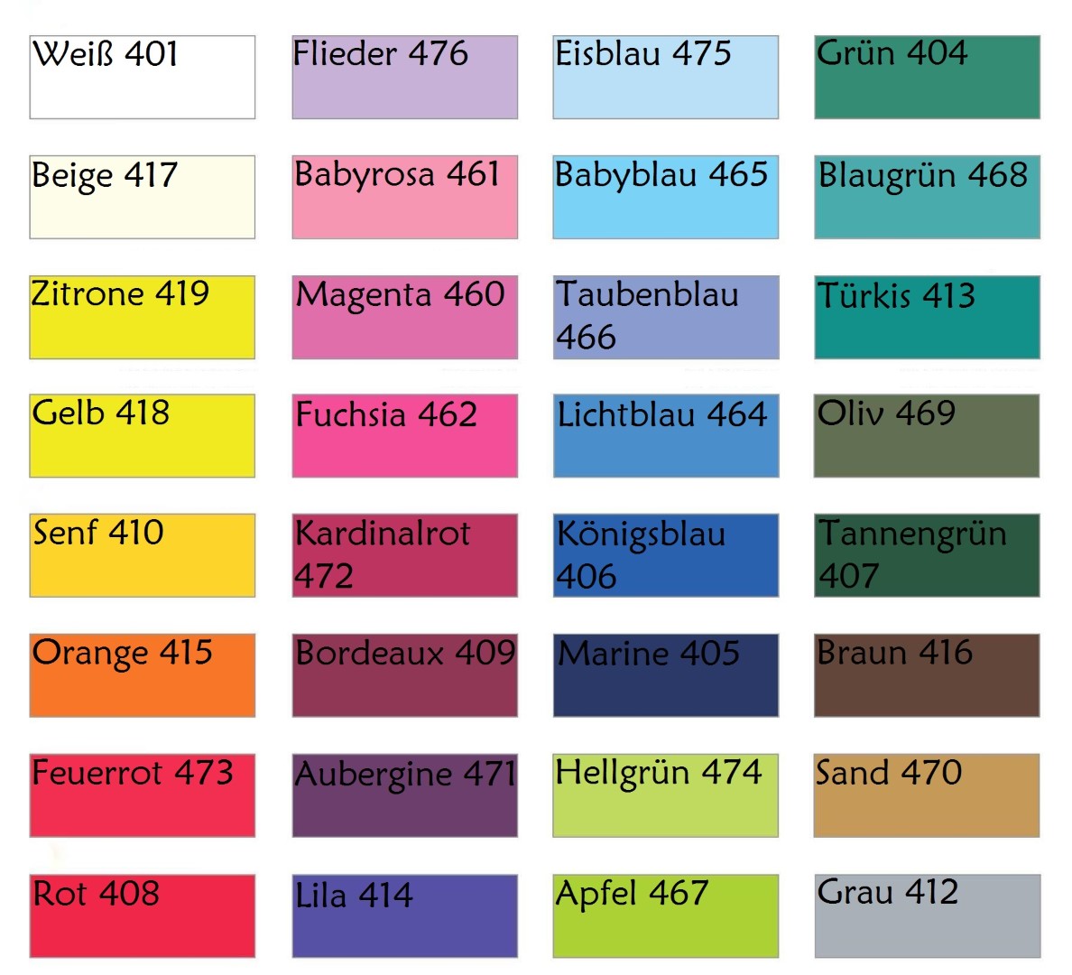 Die Farbe Hellblaum und die Neonfarben sind aufgrund erhöhter Flächenhaftung auf dem Polyesterträger nicht für Schriften unter 2cm geeignet! Bei diesen Farben den Polyesterträger nicht heiß, sondern lauwarm abziehen. 2 Sekunden nachpressen.